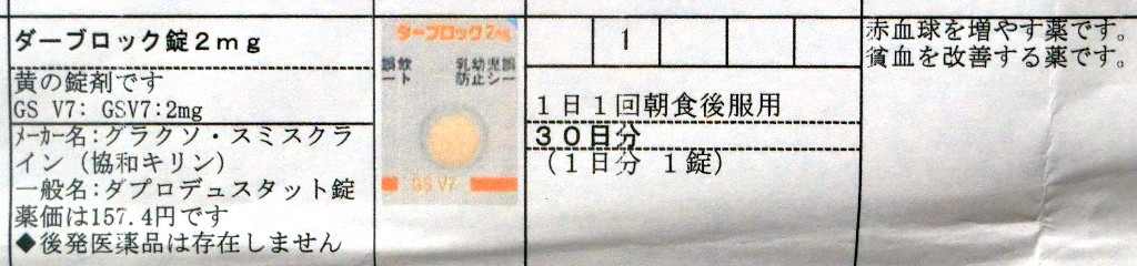…という訳で、薬局で薬(ダーブロック錠2mg)をもらって飲み始めた。