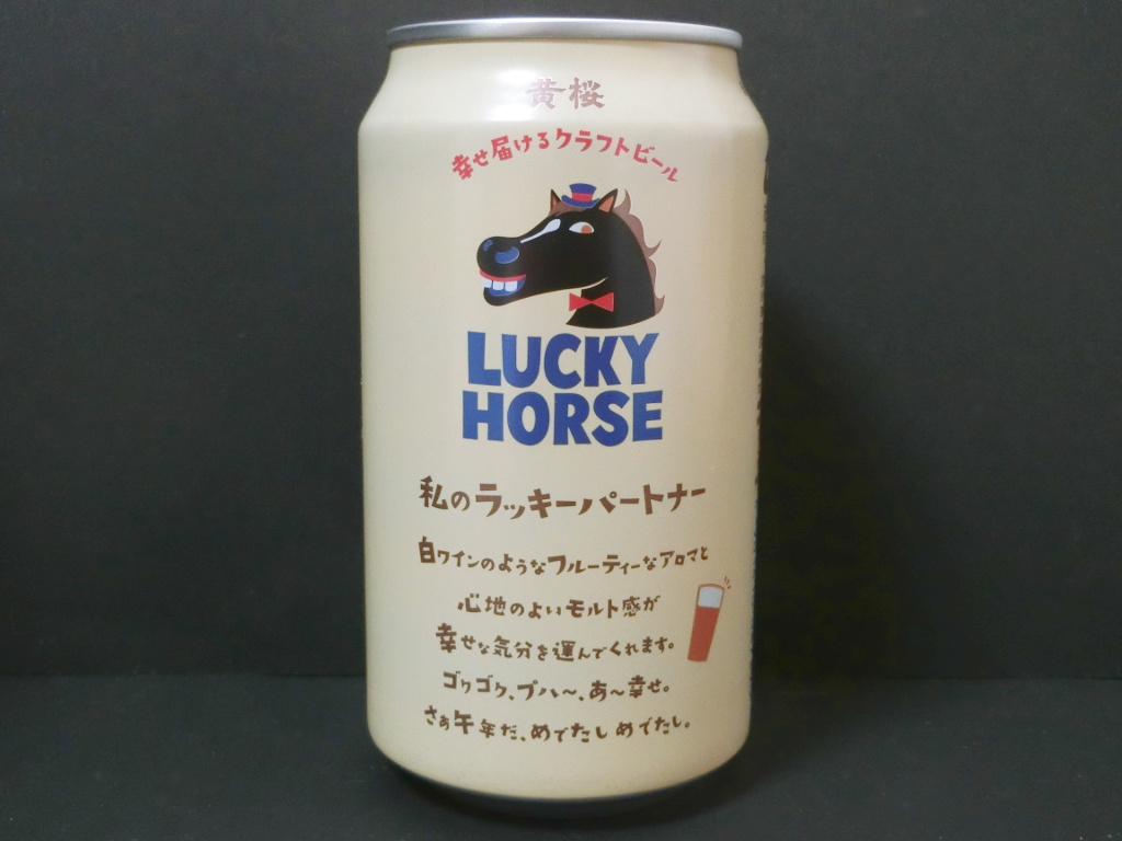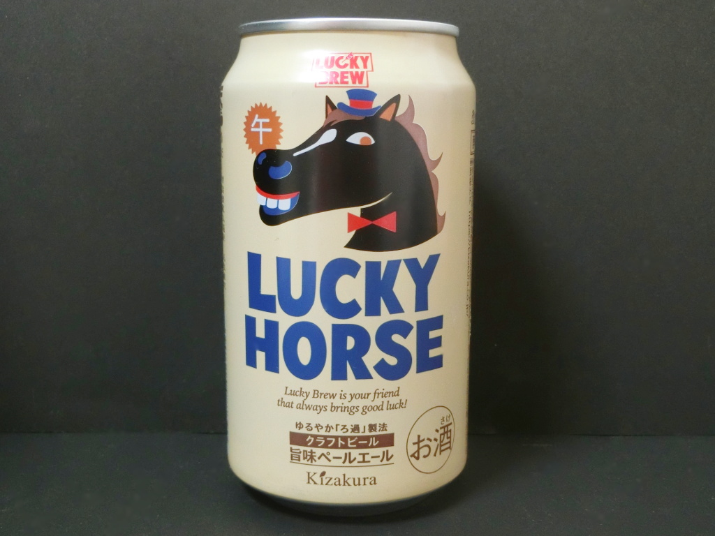 クリーム色のボディにちょっとドヤ顔の表情の馬の絵が目立つ、京都・黄桜(旧・黄桜酒造)のビール「LUCKY HORSE・旨味ペールエール」だ。